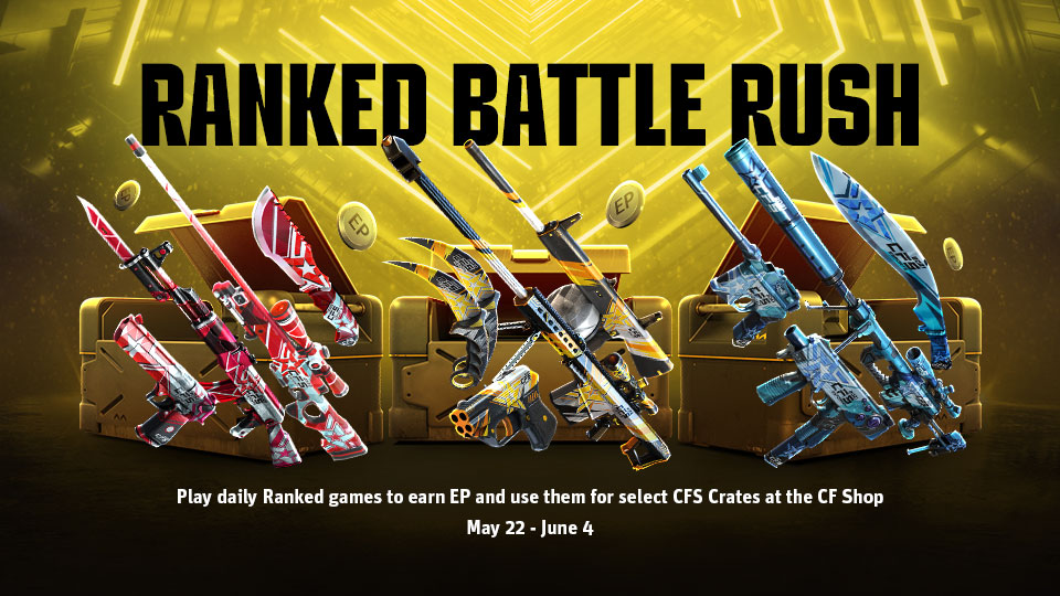 Attention Mercenaries,Here comes a high-stakes operation: From May 22nd to June 4th, earn EP with every Ranked match fight and trade it for select CFS Crates in the CF Shop. No downtime. No retreat. The more you battle, the more you earn. Lock, load, and go full assault. The rewards are waiting on the other side of the crosshairs.