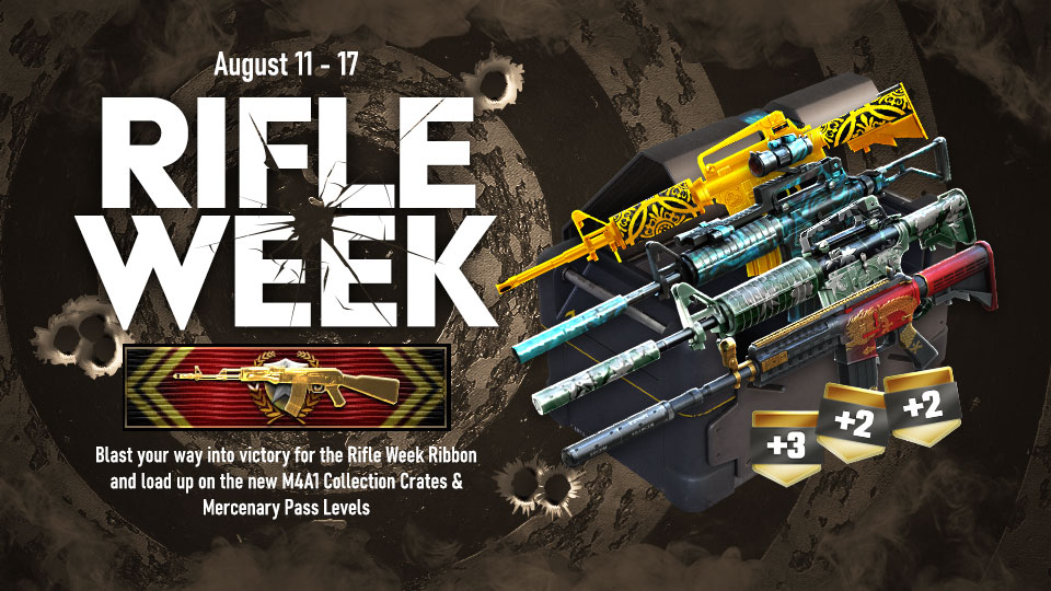 Attention Mercenaries, Load those rile and blast your into victory because Rifle Week is here! From August 11th to 17th, so grab those trusty, favorite, or whatever your rifle of choice may be. You'll need it if you're to take home the spoils!