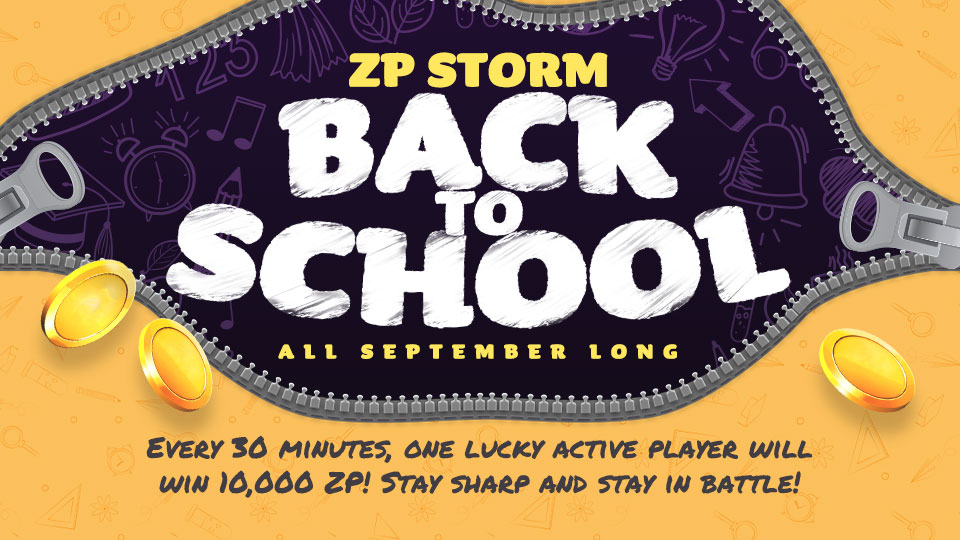 Attention Mercenaries🎒💥,School's back but so are the rewards, with the return of the Back To School ZP Storm event throughout September. We're turning up the heat with a fantastic opportunity that could have you walking away with some serious ZP!