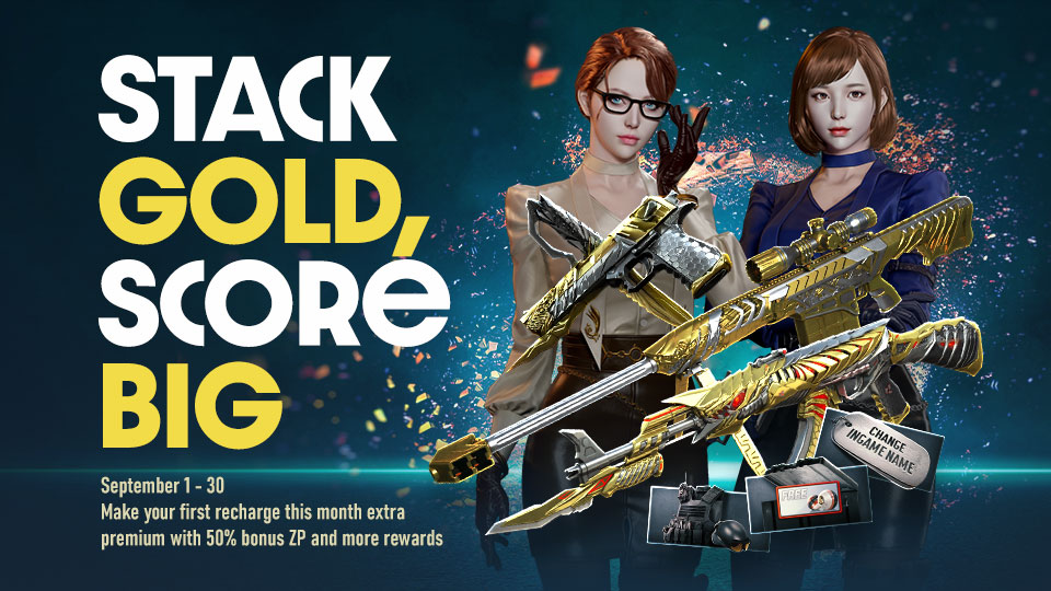 Attention Mercenaries, Feeling lucky this September? Your first recharge is getting the golden treatment with a shiny 50% bonus ZP and tons of fun rewards waiting just for you. Stack up your loot, and flex your fortune. It’s your time to score big!