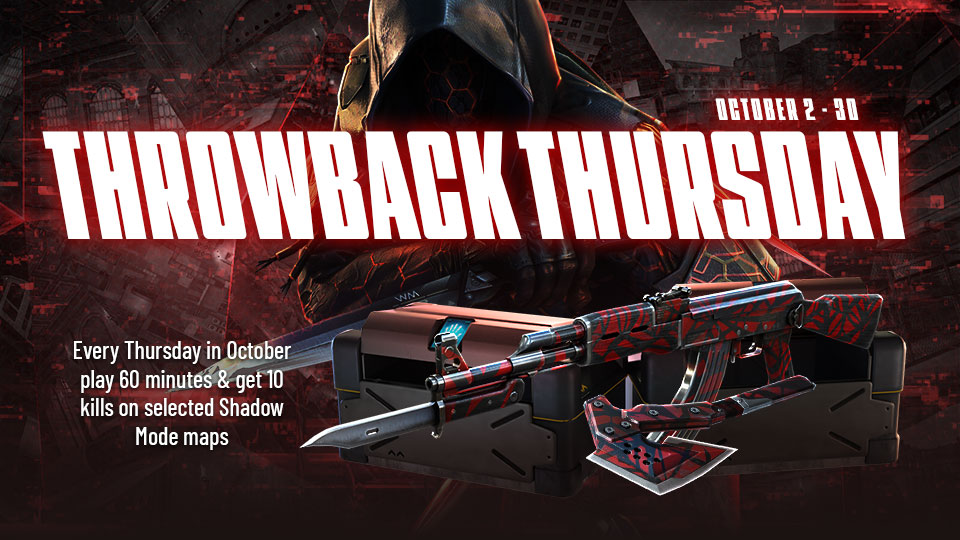 From October 2nd until the 30th play 60 minutes and get 10 kills every Thursday on selected Shadow Mode maps to earn 5 Red Spider Web Set Crates each week.
