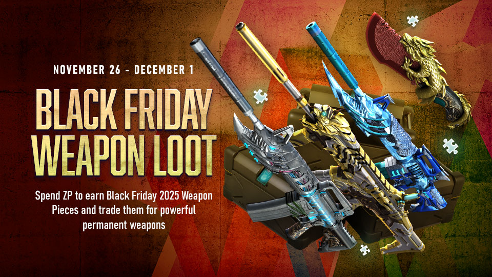 Attention Mercenaries,The Black Friday Weapon Loot event is here, and it brings you something exciting from November 26th until December 1st. Get ready to spend those ZP to earn the Black Friday 2025 Weapon pieces and trade them for powerful permanent weapons.