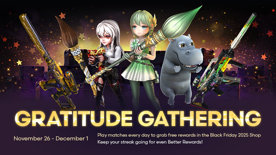 A whirlwind of gratitude and goodies awaits you at our Gratitude Gathering, taking place from November 26th through December 1st! This is your chance to enhance your loadout and put it into action. Jump into daily games, score loads of awesome rewards, and gear up for an unforgettable Black Friday 2025!