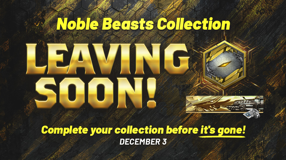 The Noble Beasts are going back into their cage and the collection will be leaving soon! Make sure to capture them before your chance gets loose, because it will be closed moving forward.