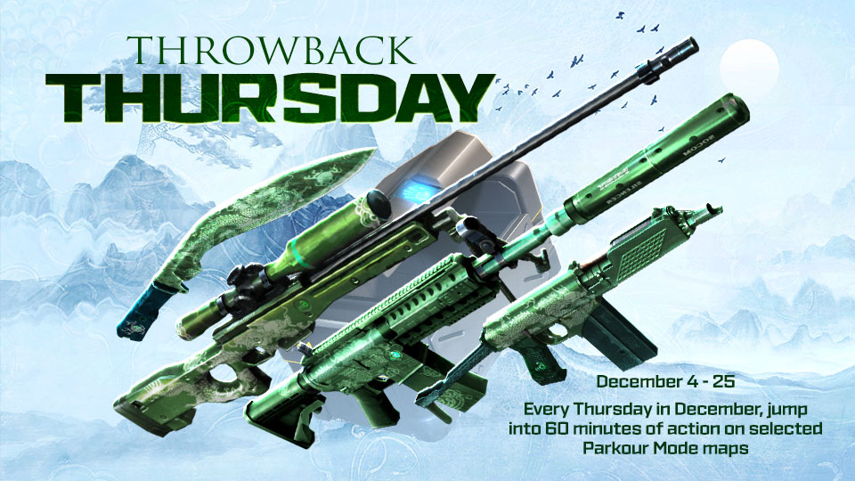 From December 4th until the 25th, play 60 minutes every Thursday on selected Parkour Mode maps (to be found under Team Deathmatch) to earn 5 Jade Mega Crates each week.