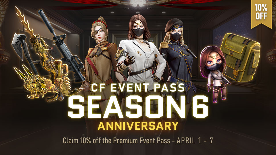 Attention Mercenaries, The anniversary is coming to an end, and CF Event Pass Season 6 is in its final week. From April 1st to the 7th, it is your last chance to enjoy the CF Pass rewards while they are here, now with extra value.
