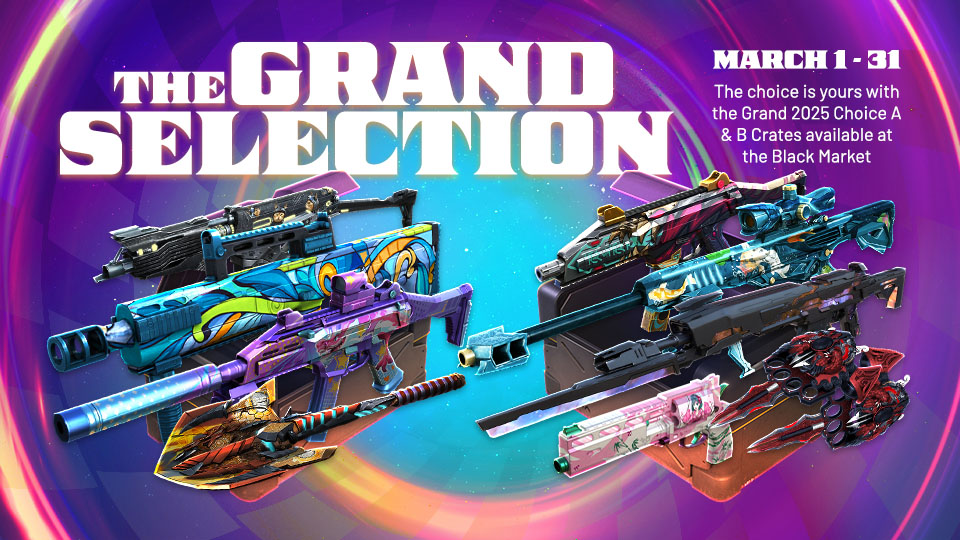Attention Mercenaries,It’s time to make your choice and leave your mark in The Grand Selection. From March 1st to March 31st, the Grand 2025 Choice A & B Crates arrive in the Black Market. Choose the weapon that defined your year, claim your firepower, and dominate the battlefield once again.