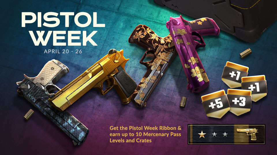 Attention Mercenaries, Lock in, gear up, and let your sidearm steal the spotlight! Pistol Week kicks off from April 20th to the 26th, bringing a full week of fast draws, sharp aim, and close-quarters domination. Whether you are a precision shooter or just looking to make some noise with your favourite pistol, rewards are waiting, and the Pistol Week Ribbon is on the line.