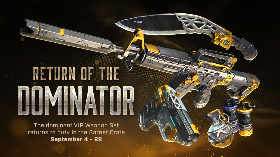 From September 4th to September 29th, you can purchase Garnets in the Black Market and spin the Garnet crates with a chance to win permanent weapons in this VIP set: