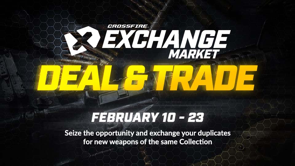 Attention Mercenaries, Step into a world of exciting deals and trades from February 10th to 23rd at the CrossFire Exchange Market. Trade in your duplicate weapons and get new ones from the same collection. Don’t miss this chance to enhance your arsenal and complete your collections!